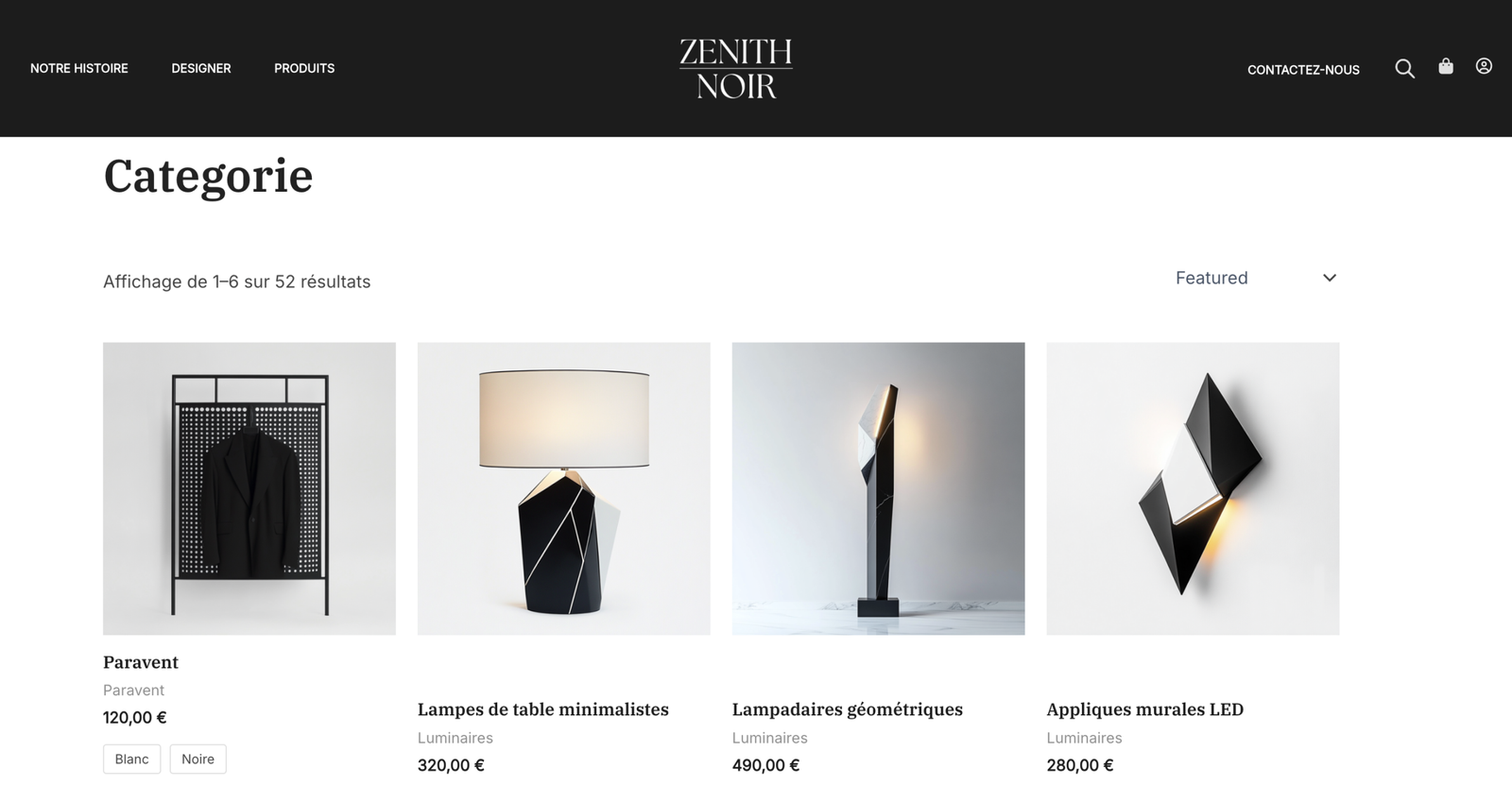 Zenith Noir est un projet de création de marque et de site e-commerce dans l’univers de la décoration intérieure futuriste et minimaliste. L’objectif était de concevoir une identité digitale forte, premium et immersive, capable de transmettre immédiatement une sensation d’élégance moderne et de sophistication. Le travail a porté sur la création d’un univers visuel cohérent : palette sombre et contrastée, typographies épurées et mise en page aérée mettant en valeur les produits. Chaque élément a été pensé pour offrir une expérience utilisateur fluide et intuitive, tout en renforçant le positionnement haut de gamme et les objectifs commerciaux de la marque.